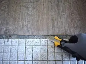 С помощью универсального ножа удалите весь клей или материал, который удерживал старую планку.