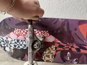 Удерживая скейтборд второй рукой, используйте край оси, чтобы выдавить подшипник.