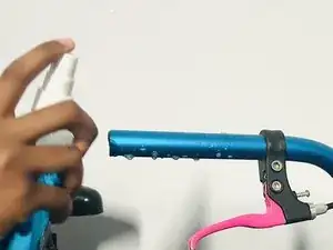 Возьмите средство для мытья стекол и намочите велосипедную ручку. (Вы также можете использовать воду)