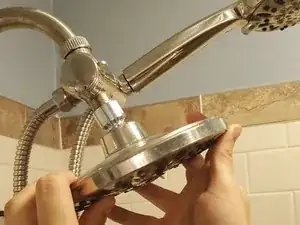 Открутите душевую лейку от настенного душевого патрубка и отложите в сторону.
