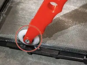 Используя Сторону A ролика для натяжки, вдавите сетку в рамку без натяжки.