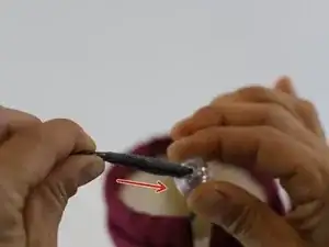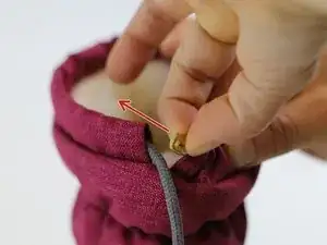 Найдите повреждённую часть фиксатора шнура и вытяните шнур из туннеля затяжки.