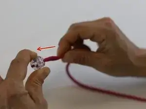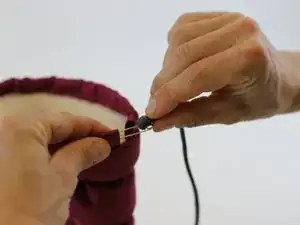 Вытяните конец шнура до тех пор, пока обе стороны не станут одинаковой длины, затем снимите булавку.