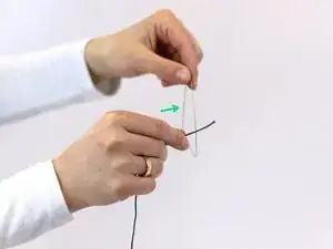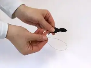 Вставьте новый шнур внутрь металлической петли и подготовьтесь к следующему шагу.