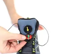Пропустите шнур через большую петлю, расположенную в середине ботинка, затем продолжите через конечную петлю слева.