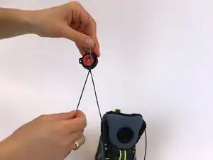 Сровняйте оба конца шнурка с основным диском и поместите их перед основанием диска.