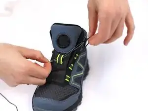 Когда конец шнурка пройдет через петлю, потяните узел с обеих сторон, чтобы затянуть его.