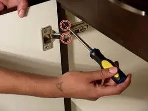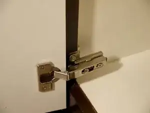 Поднимите или опустите дверь шкафа, чтобы выровнять петли с их исходным местоположением.
