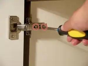 Снимите винты, которые идут в каркас шкафа от петли, затем снимите петлю.