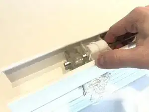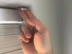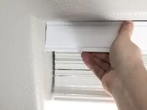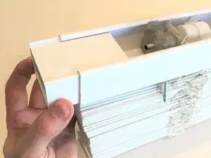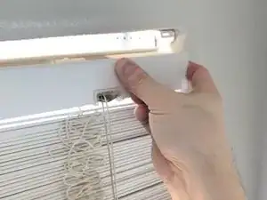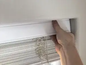 Снимите крышку короба (карниз) с жалюзи, аккуратно поддев и отводя её от окна.