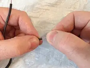 С помощью ваших бокорезов или мультитула снимите оболочку cord от медного провода с обеих сторон cord.