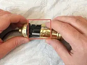 Используйте отвертку Phillips #2, чтобы частично открутить винты, удерживающие медный провод в патроне, чтобы вы могли отсоединить медный провод.