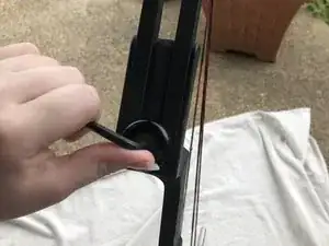 Разберите лук, вставив шестигранный ключ 3/16" в отверстие спереди лука.