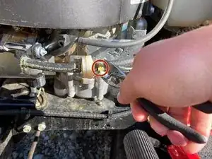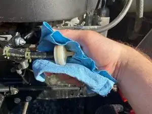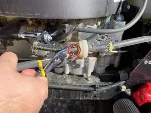 Если у вашего райдера Pony 42 Troy-Bilt наблюдается снижение производительности или затруднённый запуск, нужно снять и осмотреть топливный фильтр, чтобы определить его состояние. Длительное хранение газонокосилок может привести к ухудшению качества топлива, засорению топливного фильтра и выходу техники из строя.