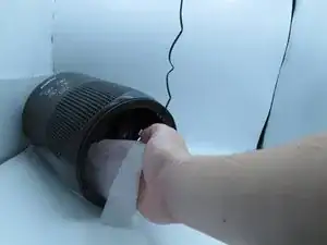 С помощью баллончика с сжатым воздухом уберите любую loose dust из пустого отсека фильтра.