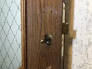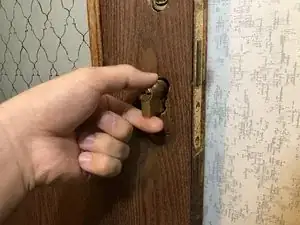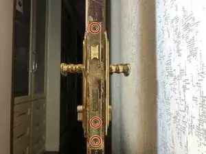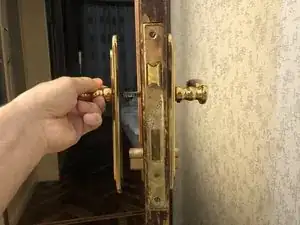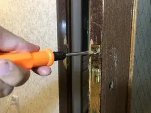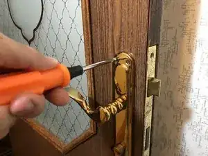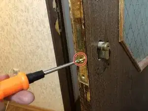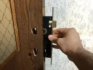Извлеките шпиндель (прямоугольный металлический элемент) из двери.