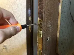 Ослабьте два винта диаметром 6 мм с плоской головкой в верхней и нижней частях замка с помощью плоской отвертки.