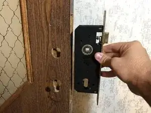 Схватите врезной замок с обеих сторон и аккуратно выньте его из края двери.