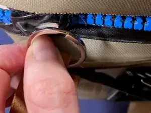 Разогните разделительное кольцо и прикрепите его к бегунку молнии.