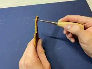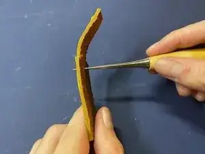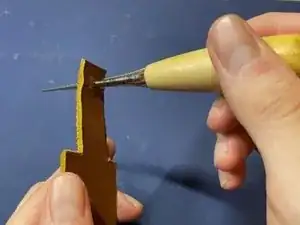 С помощью шила проткните отверстие в верхней части тонкой полосы.