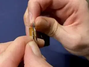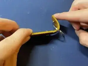 Соедините две части заклёпки вместе, чтобы образовалась петля вокруг разделительного кольца.