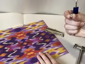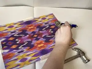 Поместите маркер или подкладку над головками заклёпок, чтобы защитить их и планшет во время забивания.