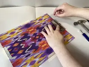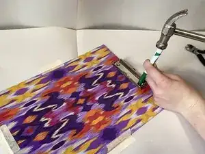 Забейте молотком головки заклёпок в ножки заклёпок, чтобы закрепить металлический зажим на доске.