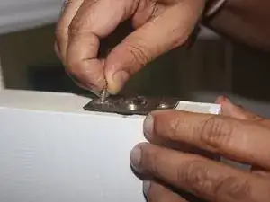 Используйте дрель, чтобы удалить два винта, по одному с каждой стороны пластины.