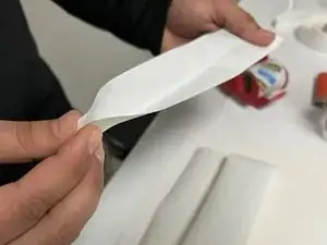 Положите сложенный кусок ремонтной ленты на стол.