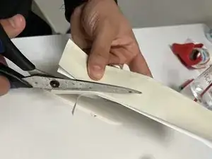 Обрежьте излишки ремонтной ленты ножницами.