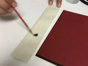 Осторожно увлажните одну клеящуюся сторону сложенной ленты кистью, чтобы активировать клей.