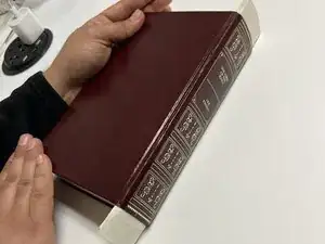Поднимите ремонтную ленту от корешка книги.