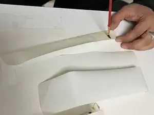 Мы использовали сложенный кусок ленты, чтобы создать петлю, фактически удвоив ширину ремонтной ленты для ремонта.