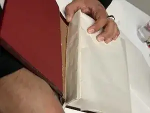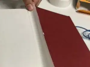 Подталкивайте отслоившуюся крышку к корешку, чтобы прикрепить её к ремонтной ленте.