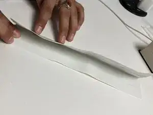 Положите сложенную ремонтную ленту на стол.