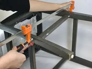 Поместите ножки, удерживающие перекладину, между губками одноштанговой струбцины.