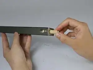 Нанесите каплю столярного клея в отверстие другой ножки.