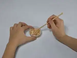 Используя одноразовую мешалку и миску, смешайте опилки и столярный клей в соотношении 2:1.
