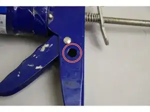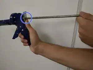 Нажмите серебряную кнопку и отведите пружину назад, чтобы полностью открыть камеру пистолета для герметика.