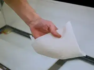Удалите оставшийся силикон бумажными полотенцами, ацетоном и пылесосом.