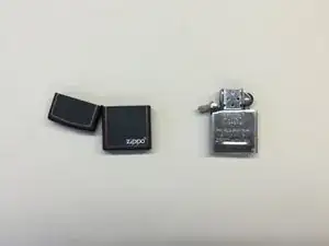 Откройте крышку Zippo и извлеките вставку – крепко удерживайте обе стороны кресала двумя пальцами. Держите основание зажигалки другой рукой и потяните вверх за металл, чтобы освободить вставку зажигалки из корпуса.