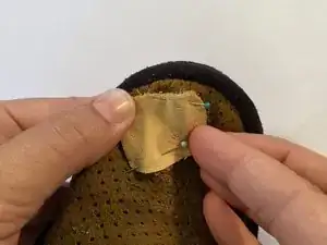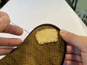 Центрируйте кожаный патч над отверстием и заколите его на место.