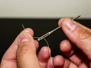 Наберите нитку в иглу и завяжите на конце узел.