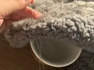 Положите ткань на грибок для заштопки так, чтобы дыра находилась в верхней части грибка.