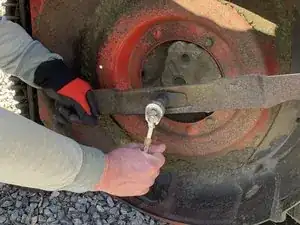 Установите лезвие обратно на газонокосилку и закрутите болт, надежно зафиксировав лезвие.