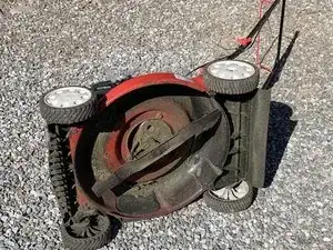 Переверните газонокосилку на бок.