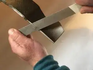 Заточите лезвие напильником или шлифовальным кругом. Следуйте уже заданному углу и ведите напильник вдоль кромки, пока она не станет острой.