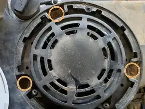 Удалите 2 винта с крестообразной насечкой, фиксирующих пластиковый кожух двигателя. Поднимите крышку и снимите ее с двигателя.