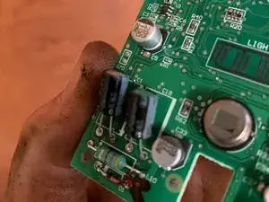 Конденсаторы заменены. Немного согните их вперёд, чтобы они поместились внутри корпуса пульта. Затем соберите в обратном порядке.