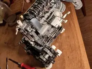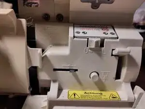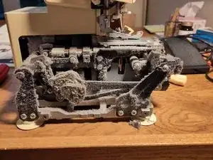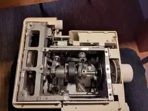 Некоторые небольшие вспомогательные системы также были сняты, например система заправки нити. Основные механические узлы закреплены очень прочно и, скорее всего, их будет трудно собрать обратно.